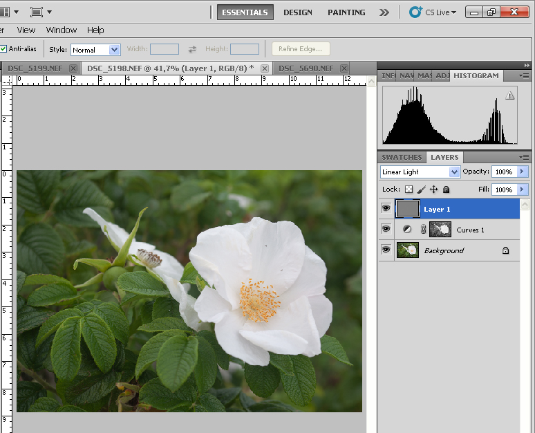 Да, то, что Эльвир предлагает, мне тоже приходило в голову. Попробую сблизить пики и растянуть их. Чтобы и тёмное и светлое было контрастным. Правда, тогда пропадёт контраст между листвой и цветком, но тут уж либо одно, либо другое. | | Denis Mirin | На своём мониторе я вполне вижу в пределах цветка оттенки, которые мне кажутся вполне естественными. Желания видеть такой цветок более контрастным - нет. В эксперименте Эльвира, как я вижу, цвета в светлой части существенно поехали.