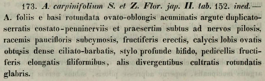 Протолог Acer carpinifolium Siebold & Zucc. (Abhandlungen der Mathematisch-Physikalischen Classe der Königlich Bayerischen Akademie der Wissenschaften 4(2): 154(-155). 1845):