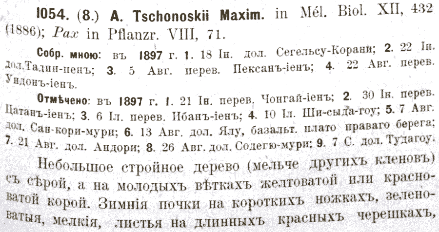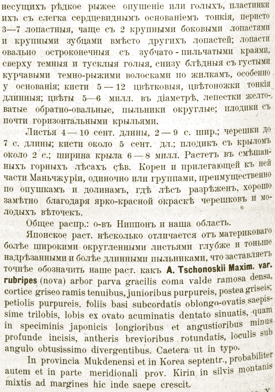 Протолог Acer tschonoskii var. rubripes Kom. (Acta Horti Petropolitani 22: 736(-737). 1904):