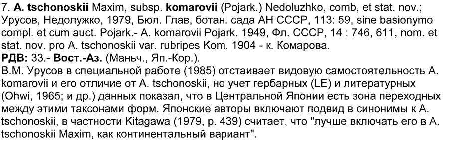 | Andriy Kovalchuk | Обнародование комбинации Acer tschonoskii ssp. komarovii (Pojark.) Nedol. (Конспект дендрофлоры российского Дальнего Востока: 91. 1995):