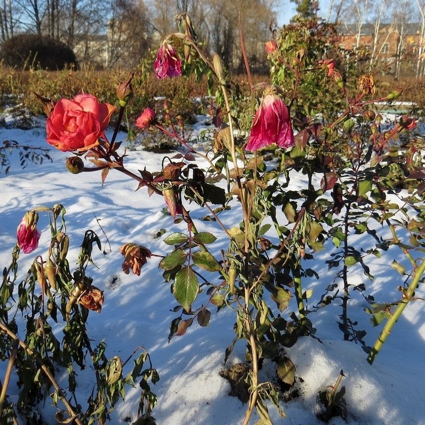 А у нас в Ботсаду розы уже приготовили на зимний период, как на фото в левом нижнем углу (обстригли и укрыли) 02.11.2017: