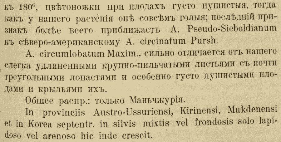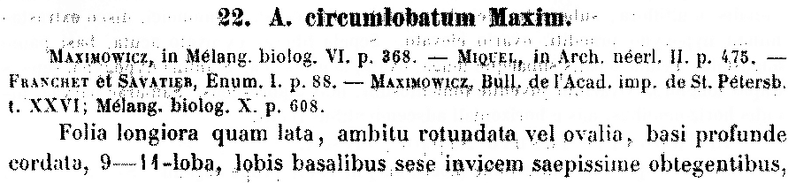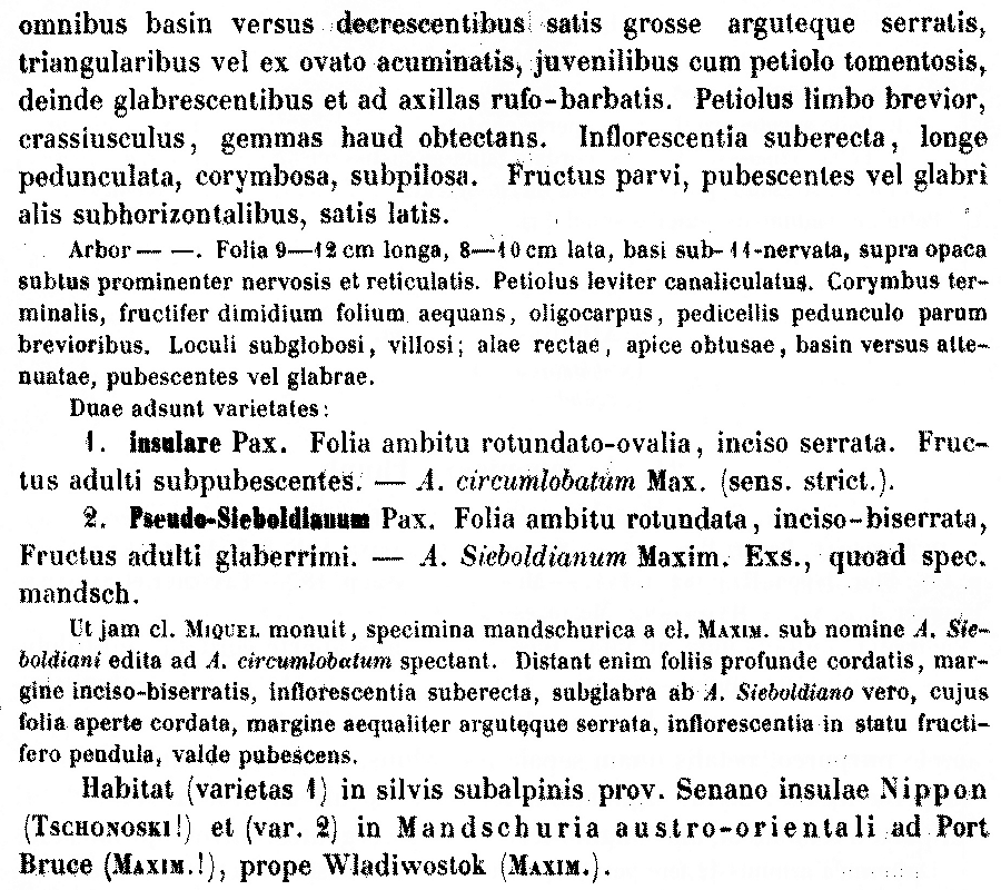 Протолог Acer circumlobatum var. pseudosieboldianum Pax (Botanische Jahrbücher fur Systematik, Pflanzengeschichte und Pflanzengeographie 7: (199-)200. 1886):