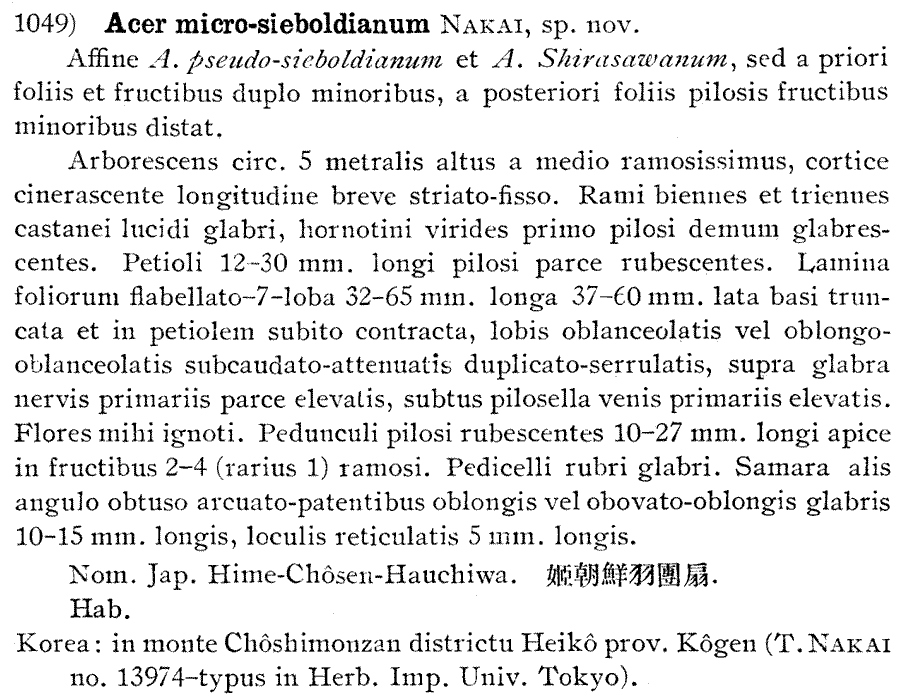 | Andriy Kovalchuk | Протолог Acer microsieboldianum Nakai (Botanical Magazine. Tokyo 45: 124. 1931):