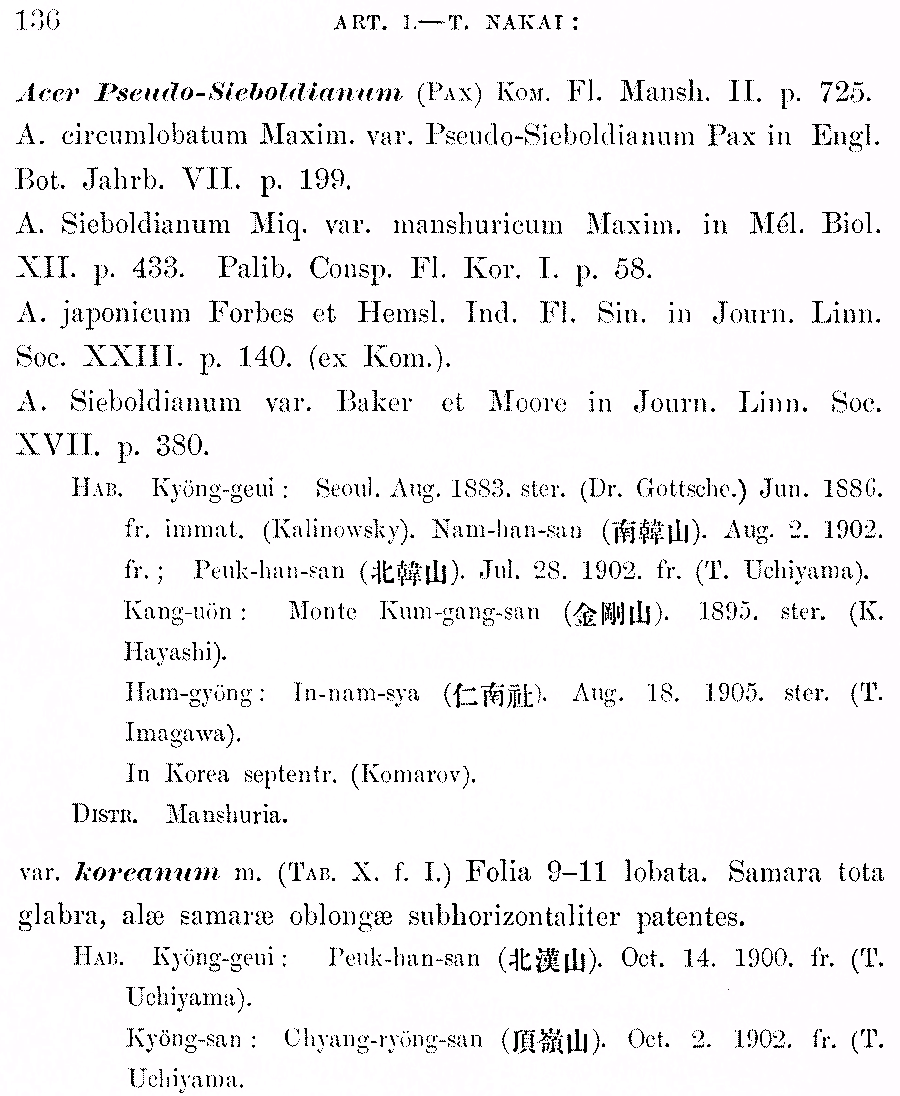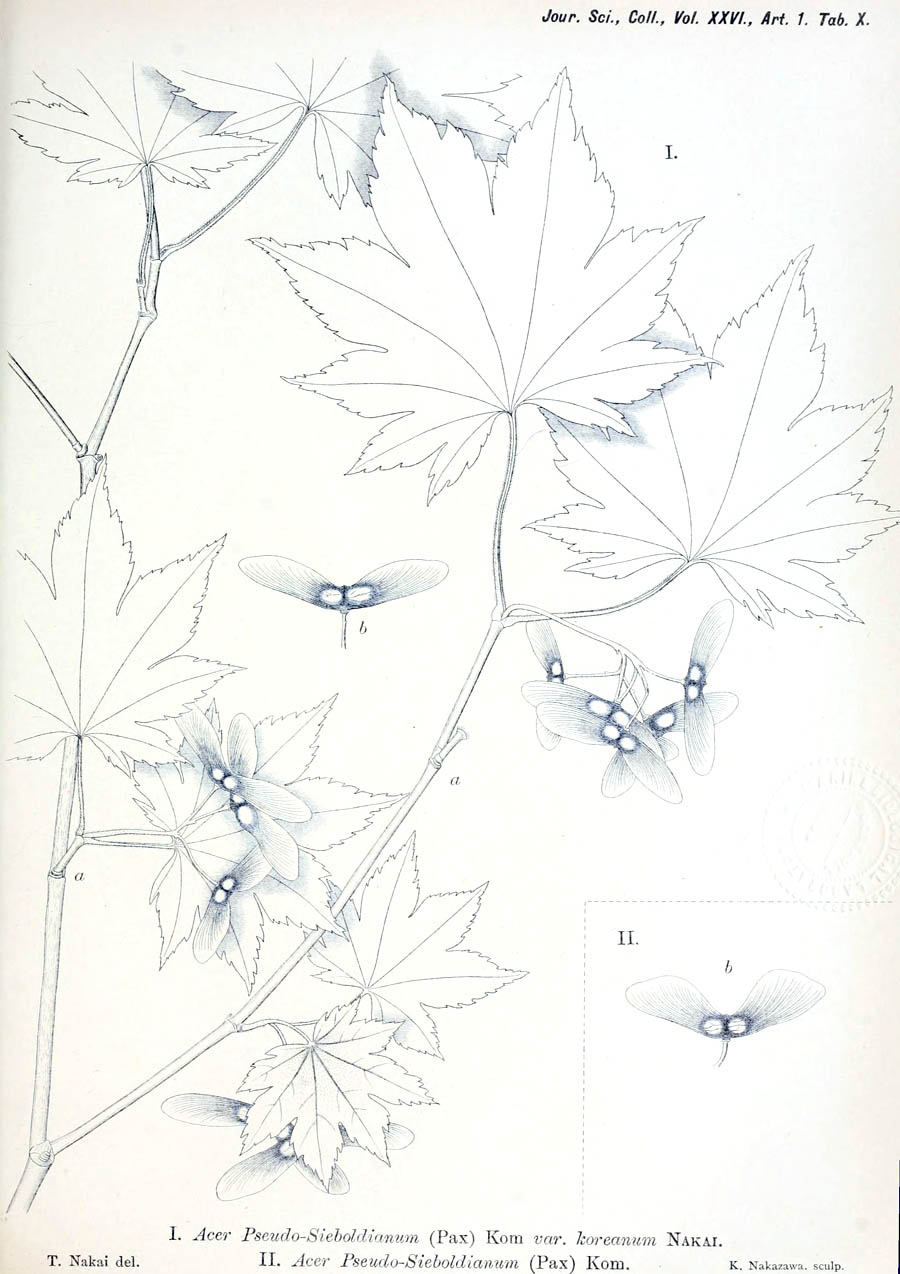 | Andriy Kovalchuk | Протолог Acer pseudosieboldianum var. koreanum Nakai (Journal of the College of Science, Imperial University of Tokyo 26(1): 136, pl. 10, f. 1. 1909):