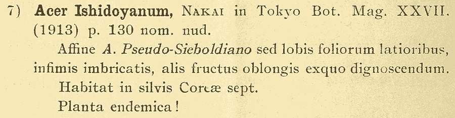| Andriy Kovalchuk | Протолог Acer ishidoyanum Nakai (Botanical Magazine (Tokyo) 29: 28. 1915):