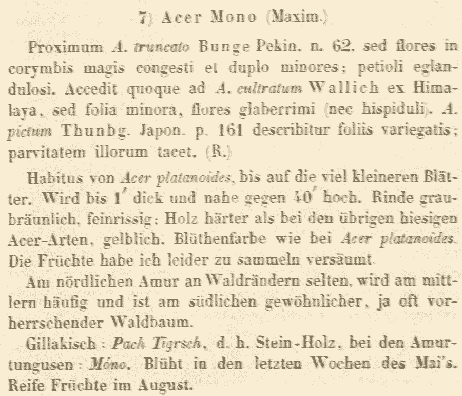 Протолог Acer mono Maxim. ex Rupr. (Bulletin de la Class Physico-Mathematique de l'Academie Imperiale des Sciences de Saint-Pétersbourg 15: 126. 1856):
