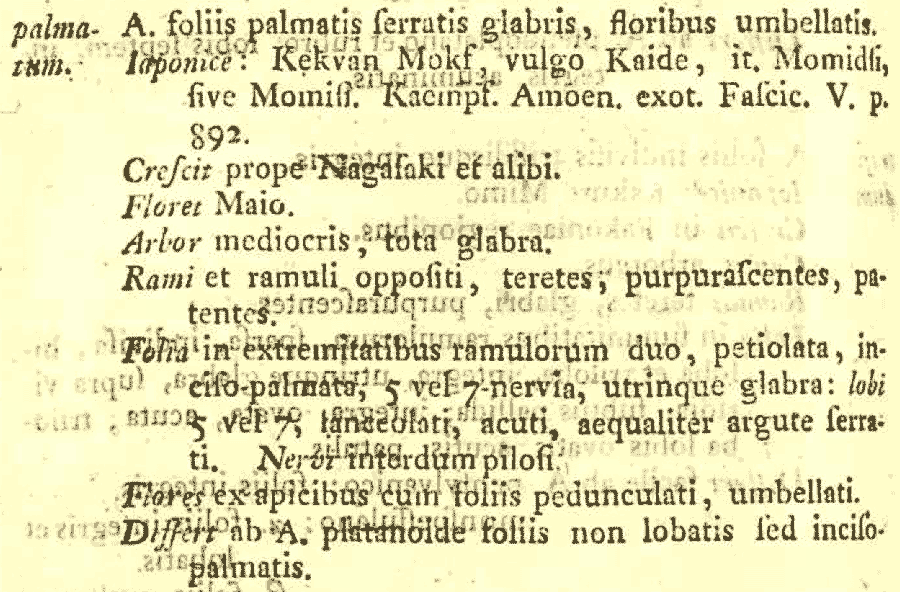 | Andriy Kovalchuk | Описание Acer palmatum Thunb. из работы К. П. Тунберга "Flora Japonica" (162. 1784 [Aug 1784])