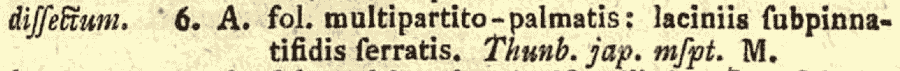 Протолог Acer dissectum Thunb. in Murray (Systema Vegetabilium: secundum classes ordines genera species cum characteribus et differentiis. Editio decima quarta: 911. 1784 [May-Jun 1784]):