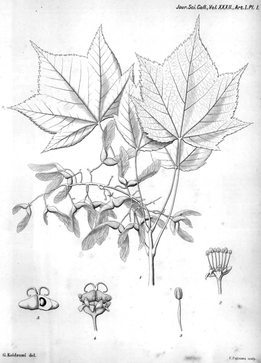 Иллюстрация из работы G. Koidzumi "Revisio Aceracearum Japonicarum" (1911)
