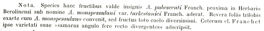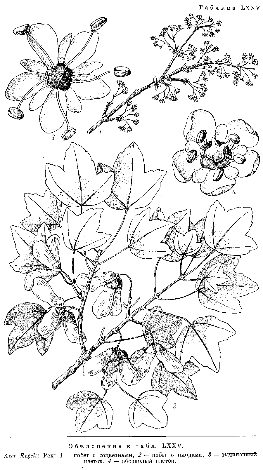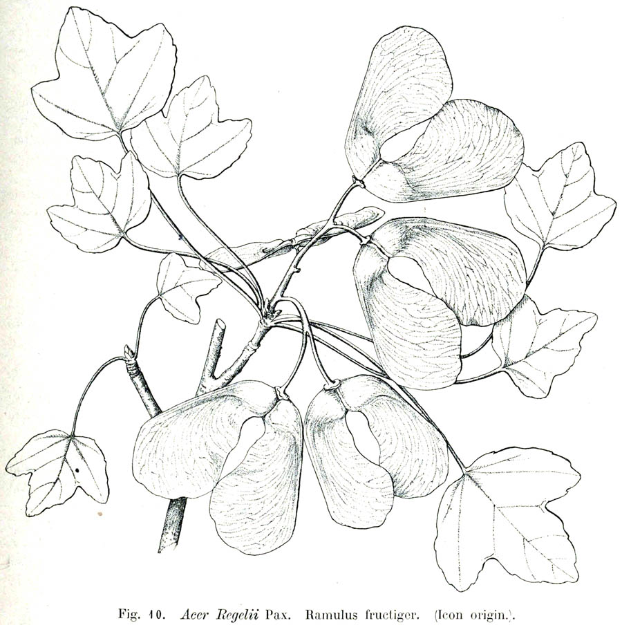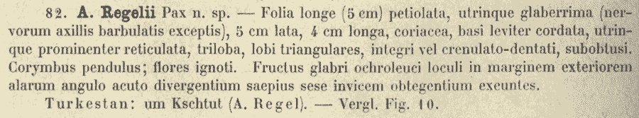 Протолог Acer regelii Pax и сопровождающий первоописание рисунок (Das Pflanzenreich (Engler) Aceraceae: 60(-61). 1902 [7 Jan 1902]):