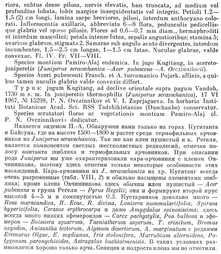| Andriy Kovalchuk | Протолог Acer ovczinnikovii Zaprjagaeva и сопровождающая его иллюстрация (Лесные ресурсы Памиро-Алая: 388(-390). 1976):