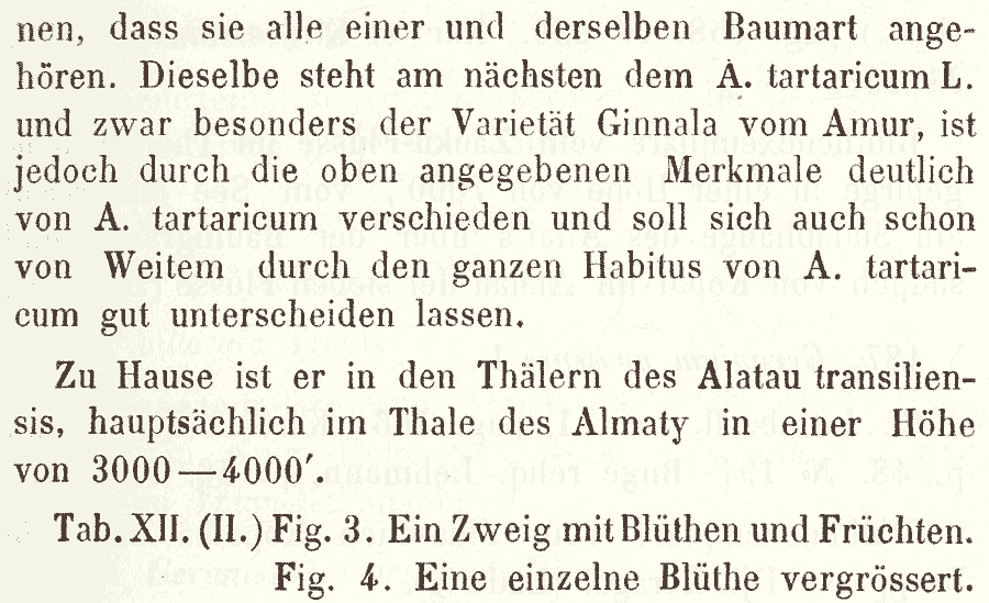 Протолог Acer semenovii Regel & Herder и сопровождающая его иллюстрация (Bulletin de la Société Imperiale des Naturalistes de Moscou 39: 550(-551). 1866):