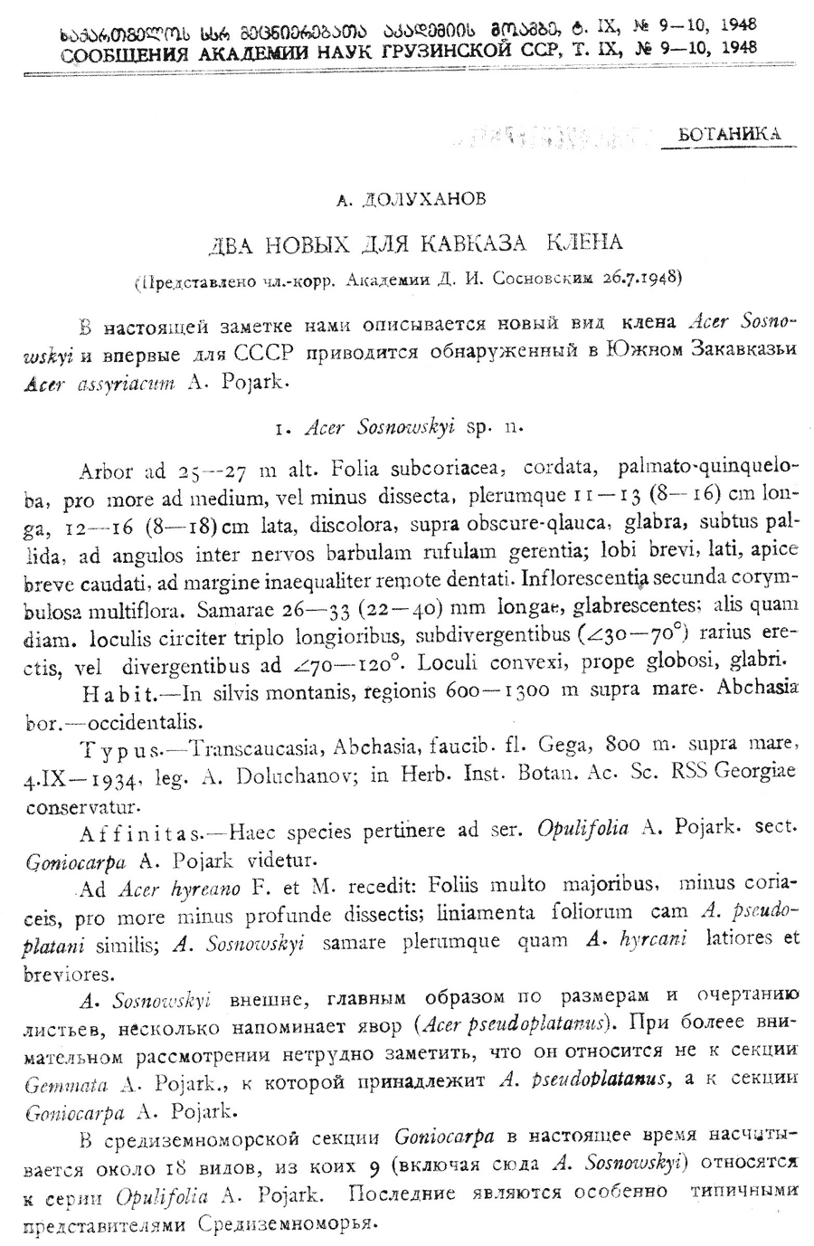 (Сообщения Академии наук Грузинской ССР, т. 9(9-10): 599(-601). 1948):