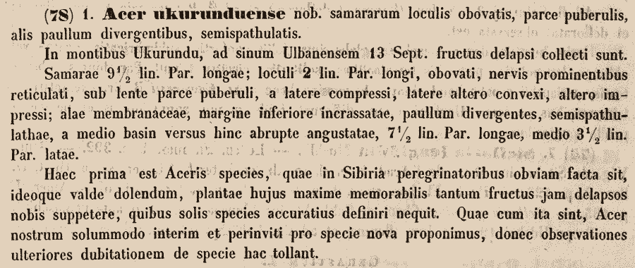 | Andriy Kovalchuk | Протолог Acer ukurunduense Trautv. & C.A. Mey. (Reise in den Aussersten Norden und Osten Siberiens Wahrend der Jahre 1843 und 1844: 1(2.2): 24. 1856):