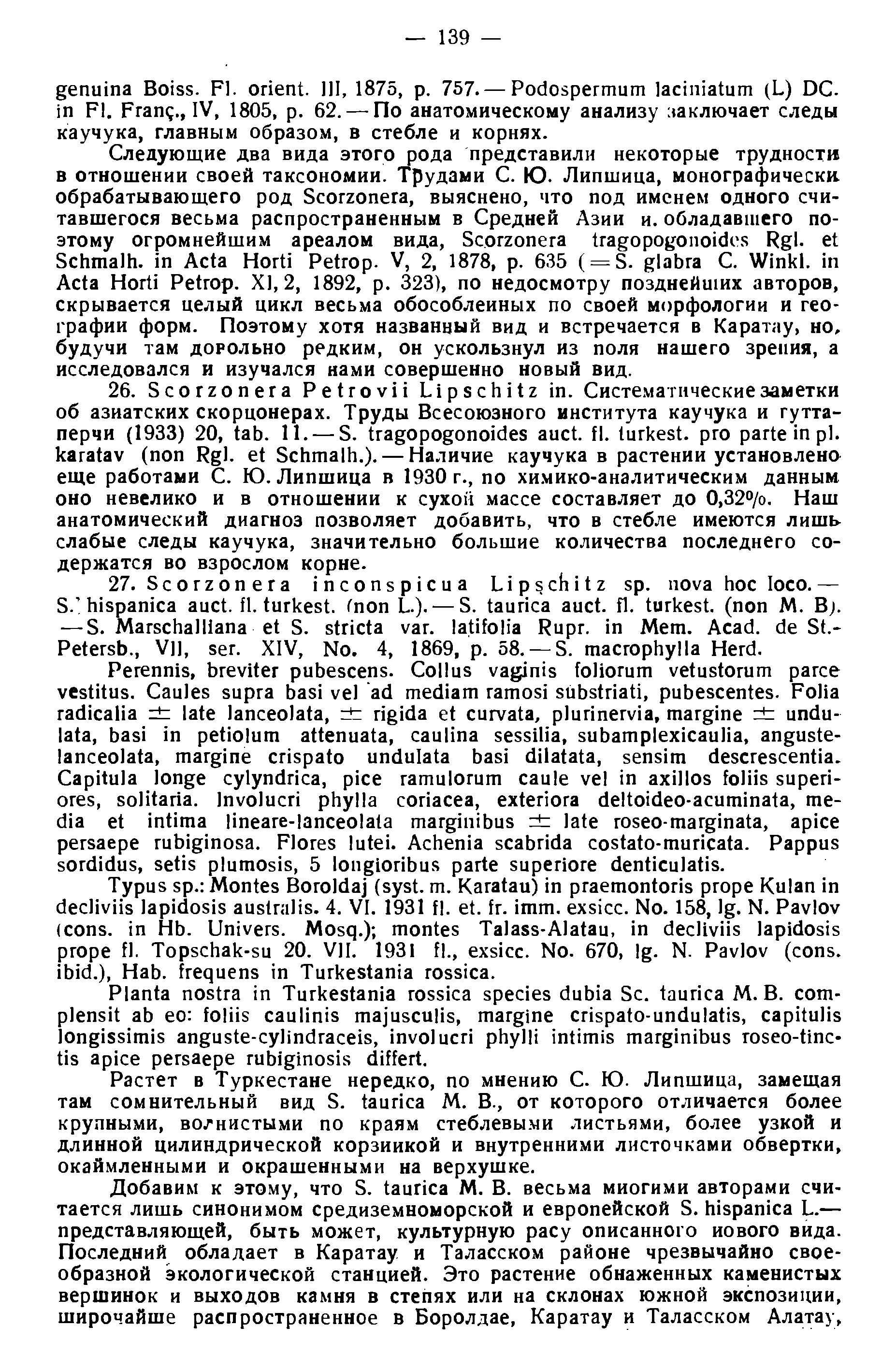 Протолог вида. Из статьи: Павлов Н.В. Каучуконосная флора Боролдая и Таласского Алатау // Бюллетень МОИП. Отд. биол. 1933. Т. 42. № 2. С. 121-153.