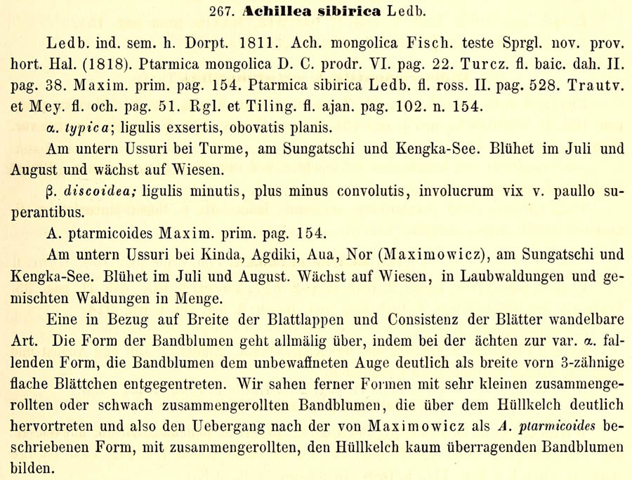 | Andriy Kovalchuk | Протолог Achillea sibirica var. discoidea Regel (Mémoires de l'Académie impériale des sciences de St.-Pétersbourg ser. 7, t. 4: 87. 1862):