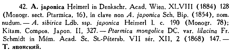 Комментарии от знающих людей о том, как правильно записать авторство Achillea japonica, приветствуются. |