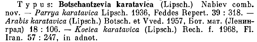 Протолог Parrya karatavica Lipsch. et Pavlov (Repertorium specierum novarum regni vegetabilis 39: 318(-319). 1936):