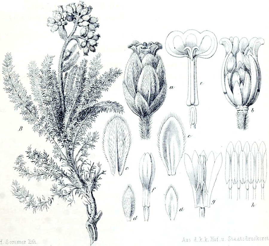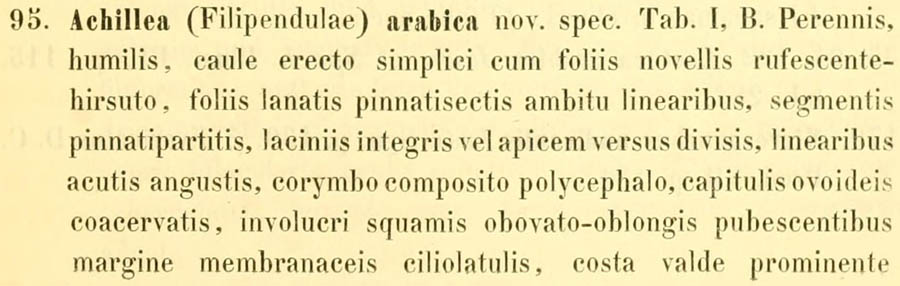 Протолог Achillea arabica Kotschy и сопровождающая его иллюстрация (Sitzungsberichte der Kaiserlichen Akademie der Wissenschaften. Mathematisch-Naturwissenschaftliche Classe Bd. 52, Abt. 1: 255(-256). 1866):