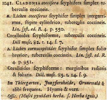 Обнародование комбинации Cladonia coccifera (L.) Willd., Fl. Berol. Prodr.: 361 (1787):
