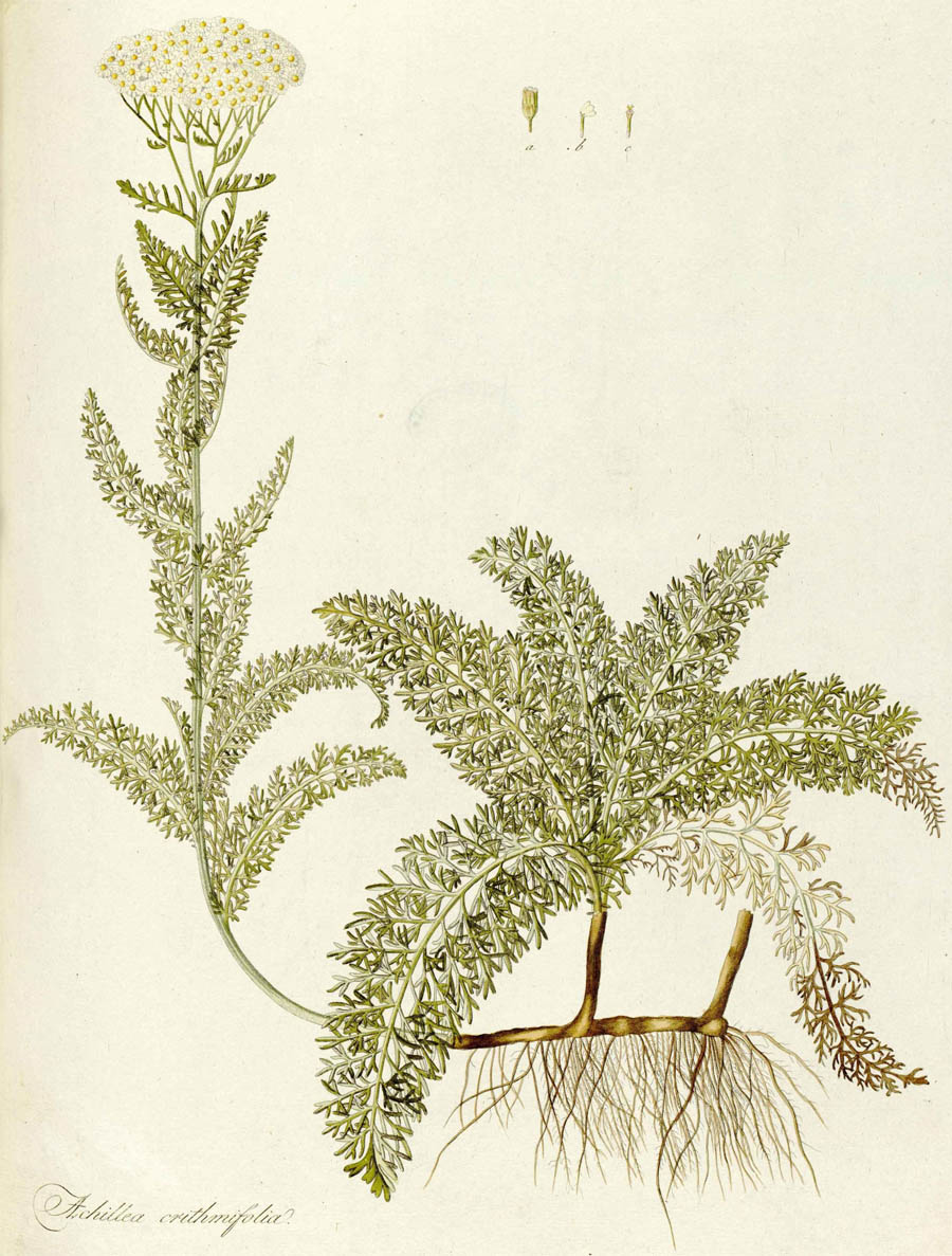 Протолог Achillea crithmifolia Waldst. & Kit. и сопровождающая его иллюстрация (Descriptiones et Icones Plantarum Rariorum Hungariae 1: 68, t. 66. [1799-1802]):