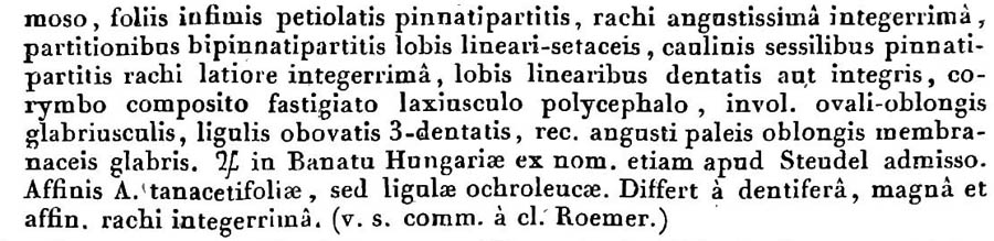 Протолог Achillea banatica DC. (Prodromus Systematis Naturalis Regni Vegetabilis 6: 29(-30). 1838 [1837 publ. early Jan 1838]):