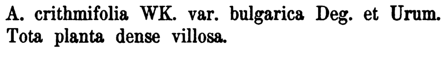 | Andriy Kovalchuk | Протолог Achillea crithmifolia var. bulgarica Degen & Urum. (Списание на Българската академия на науките 5: 16. 1912):