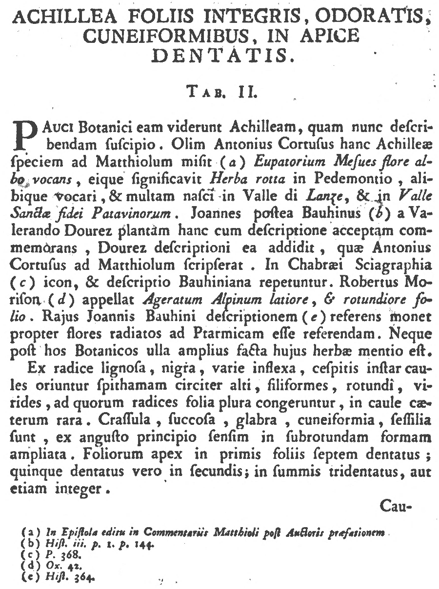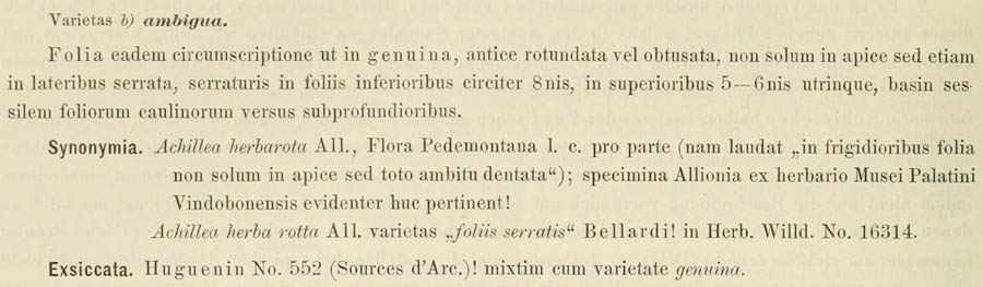 Протолог Achillea erba-rotta All. (Mélanges de Philosophie et de Mathématique de la Société Royale de Turin 5: 69. 1774):