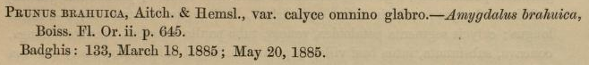 Протолог Amygdalus brahuica Boiss., Flora Orientalis 2: 645 (1872):