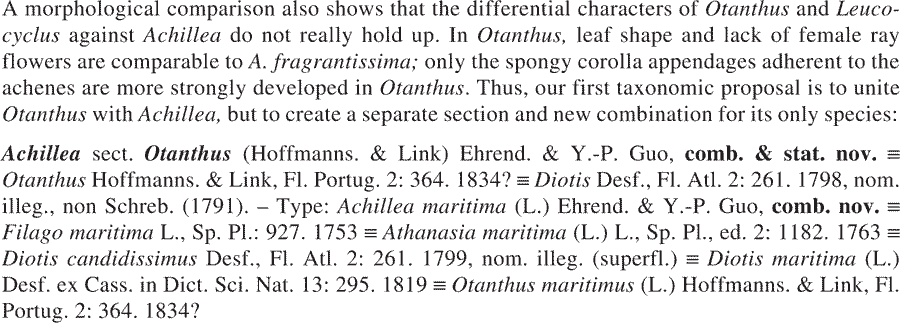 | Andriy Kovalchuk | Обнародование комбинации Otanthus maritimus (L.) Hoffmanns. & Link ((Flore Portugaise ou description de toutes les plantes qui croissent naturellement en Portugal 2: 365. 1834):