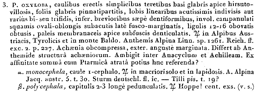 | Andriy Kovalchuk | Обнародование комбинации Ptarmica oxyloba DC. (Prodromus Systematis Naturalis Regni Vegetabilis 6: 20. 1838 [1837 publ. early Jan 1838]):