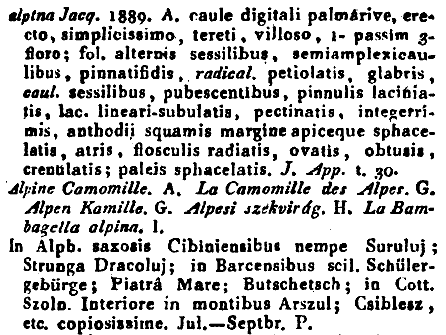 В этом издании Ф. И. Ф. Шур не даёт описания этого вида, а ограничивается ссылкой на описание в работе И. К. Г. Баумгартена "Enumeratio Stirpium in Magno Principatu Transsilvaniae praeprimis indigenarum..." 3: 145. 1816: