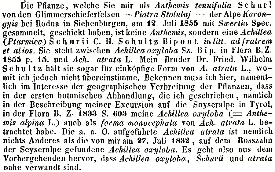 | Andriy Kovalchuk | Обнародование комбинации Achillea schurii Sch. Bip. (Oesterreichisches Botanisches Wochenblatt 6: 300. 1856):