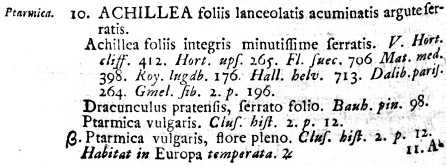 Протолог Achillea ptarmica L. (Species Plantarum 2: 898. 1753):