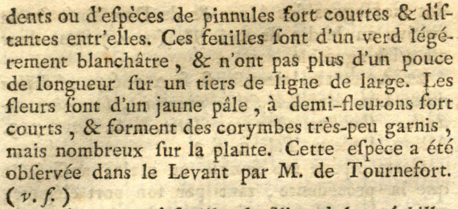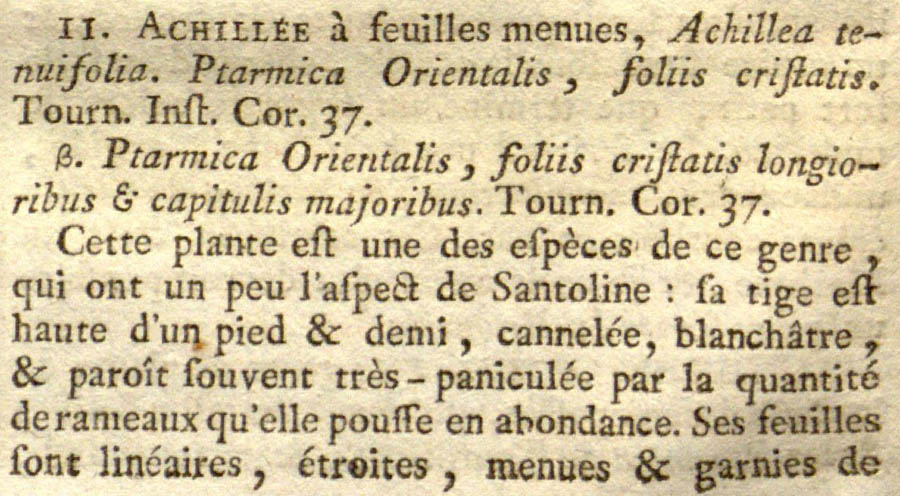 Протолог Achillea tenuifolia Lam. (Encyclopedie Methodique. Botanique 1(1): 26. 1783 [2 Dec 1783]):