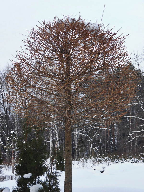 Лиственница, не единыжды обстригавшаяся под шар. Для вида нужны шишки и детали.