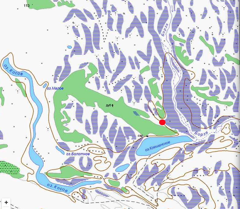 Точка находится между рекой Борзя и озером Клёшенское, в болотистой пойме реки, на границе с дубовыми лесами. Из описаний снимков растений и ландшафта: осоково-пушицевое болото в пойме реки Борзя, дубовое редколесье, осоковое болото, разнотравный луг.