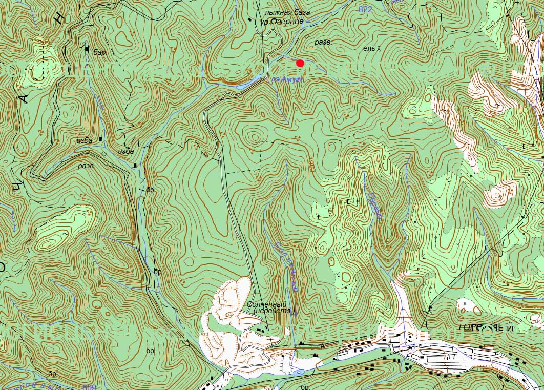 Точка в Солнечном районе, на склонах хребта Мяочан, севернее пгт Горный, на одном из притоков реки Амут. Недалеко от озера Амут. Река Амут -> река Левая Силинка -> река Силинка -> Река Амур.