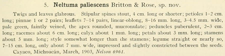 Протолог Neltuma pallescens Britton & Rose (North American flora 23(3): 185. 1928 [20 Dec 1928]):