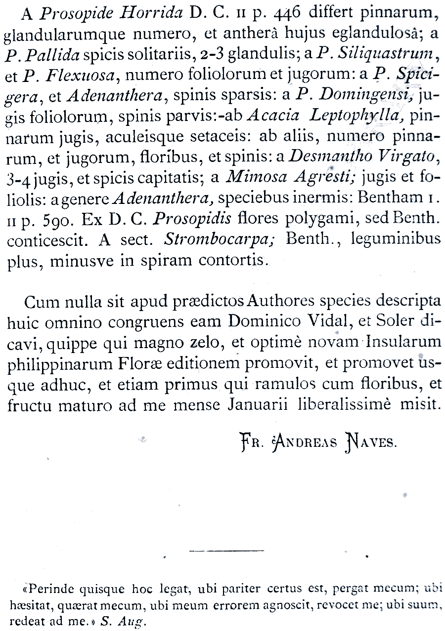 | Andriy Kovalchuk | Протолог Prosopis vidaliana Náves ex Fern.-Vill. (Descripción de la Especie botánica Prosopis vidaliana de la flora de Filipinas 15 (9-17; tt. 1-2). 1877):