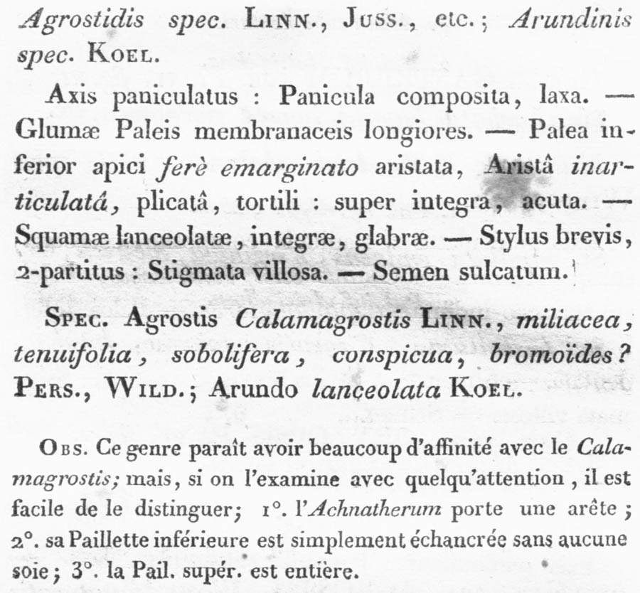 | Andriy Kovalchuk | Обнародование комбинации Achnatherum calamagrostis (L.) P. Beauv. и сопровождающий его рисунок (Essai d'une Nouvelle Agrostographie; ou Nouveaux Genres des Graminées; Avec Figures Représentant les Caractéres de tous le Genres: 19-20, 146, t. 6. f. 7. 1812 [Dec 1812]):