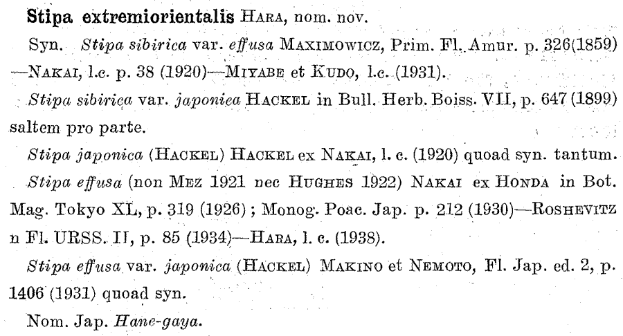| Andriy Kovalchuk | Обнародование комбинации Stipa extremiorientalis H. Hara (Journal of Japanese Botany 15(7): 459. 1939):