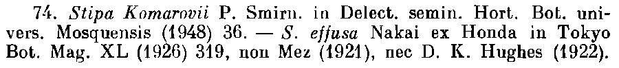 | Andriy Kovalchuk | Обнародование комбинации Stipa effusa (Maxim.) Nakai ex Honda, nom. illeg. (Botanical Magazine (Tokyo) 40: 319. 1926; non Mez, 1921):