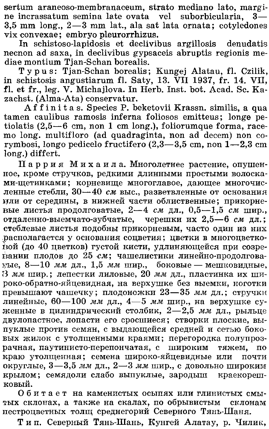 | Andriy Kovalchuk | Протолог Parrya beketovii Krasn. (Enumeratio plantarum anno 1886 in Tian Schan orientali lectarum: 18. 1887):