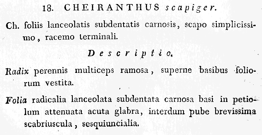 Протолог Cheiranthus scapiger Adams (Mémoires de la Société impériale des naturalistes de Moscou 5: 112. 1817):