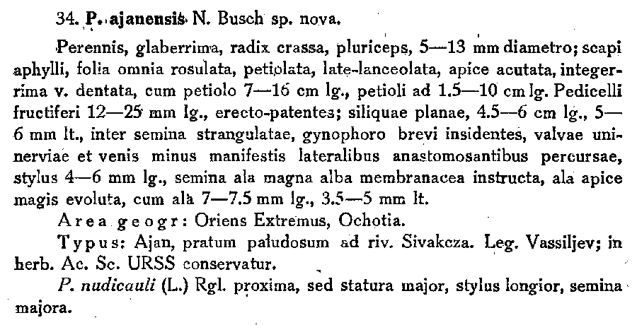 Протолог Parrya ajanense N. Busch (Флора СССР 8: 646, 261. 1939):