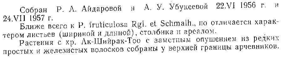 | Andriy Kovalchuk | Протолог Parrya tianschanica Nikitina (Флора Киргизской ССР. Дополнение, вып. 1: 112(-113), 75(-76). 1967):