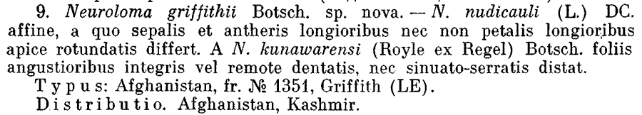 Протолог Neuroloma griffithii Botsch. (Ботанический журнал 57(6): 670. 1972):