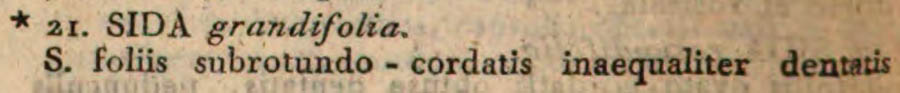 Протолог Sida grandifolia Willd. (Enumeratio Plantarum Horti Regii Botanici Berolinensis: continens descriptiones omnium vegetabilium in horto dicto cultorum 2: 724 (-725). 1809 [Jun ? 1809] и Sida mollicoma Willd. (Enumeratio Plantarum Horti Regii Botanici Berolinensis: continens descriptiones omnium vegetabilium in horto dicto cultorum 2: 725. 1809 [Jun ? 1809]  :