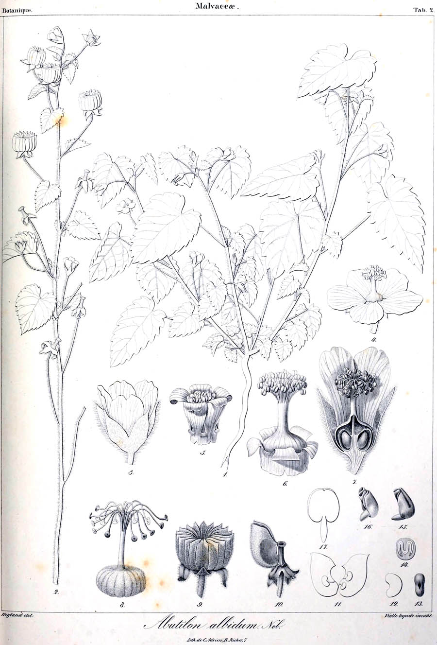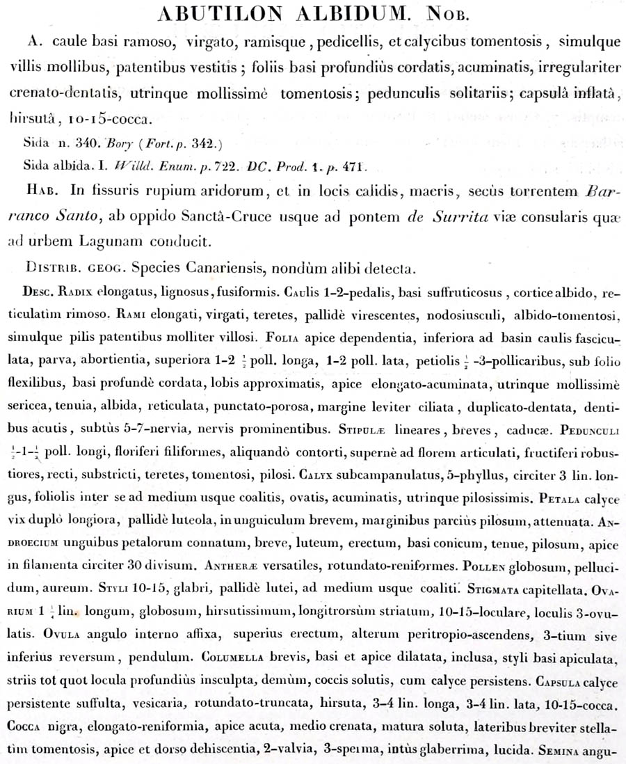 Протолог Abutilon albidum Webb & Berthel. (Histoire Naturelle des Iles Canaries, ...Tome troisieme [Botanique] pt. 2. Phytographia Canariensis 1: 39, t. 2. 1836):